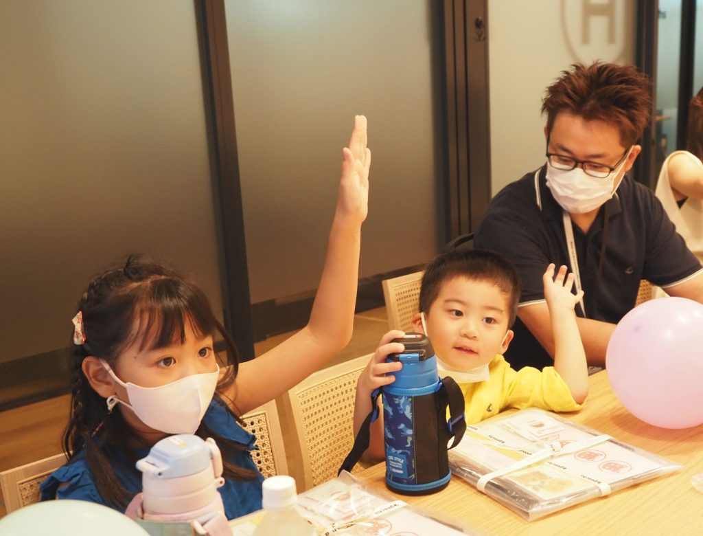 「パパやママがどんなお仕事をしているか知っている人?」と言う広報メンバーからの質問に手を挙げたお子さんたち。一生懸命説明してくれる姿がとても可愛らしかったです。