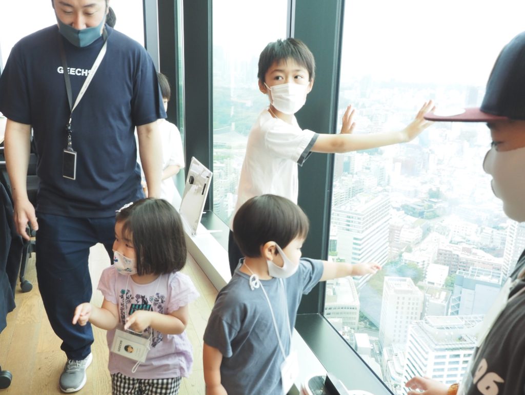 オフィス見学では、社員が働く執務室内やフォンブースなどの共有スペース、フリースペースを巡りました。「静かに回ろうね」という約束をしっかり守りながら、普段目にすることのない景色を前にとても楽しんでいる様子が伝わりました。