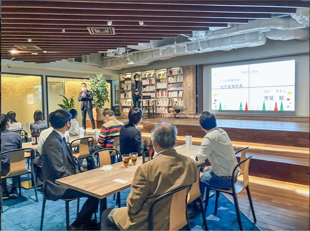 会場にはレストランのビュッフェを用意。皆さまが料理を自由に取り終えたところで、IT人材事業本部 地方営業部部長の芳賀による乾杯の挨拶から、イベントが始まりました。