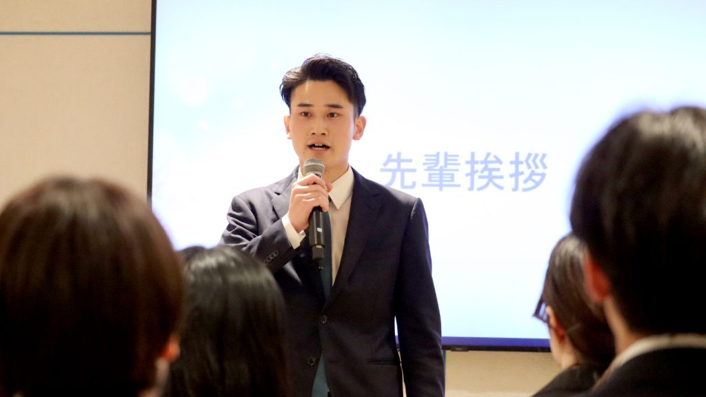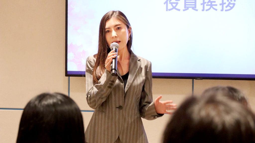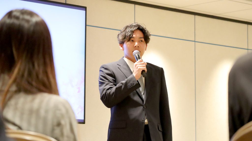 先輩社員を代表し、2023年度新卒入社の宮﨑が、自身の1年間を振り返りつつ、一番近い先輩として具体的なアドバイスや、新入社員の背中を押すような力強い言葉を贈りました。