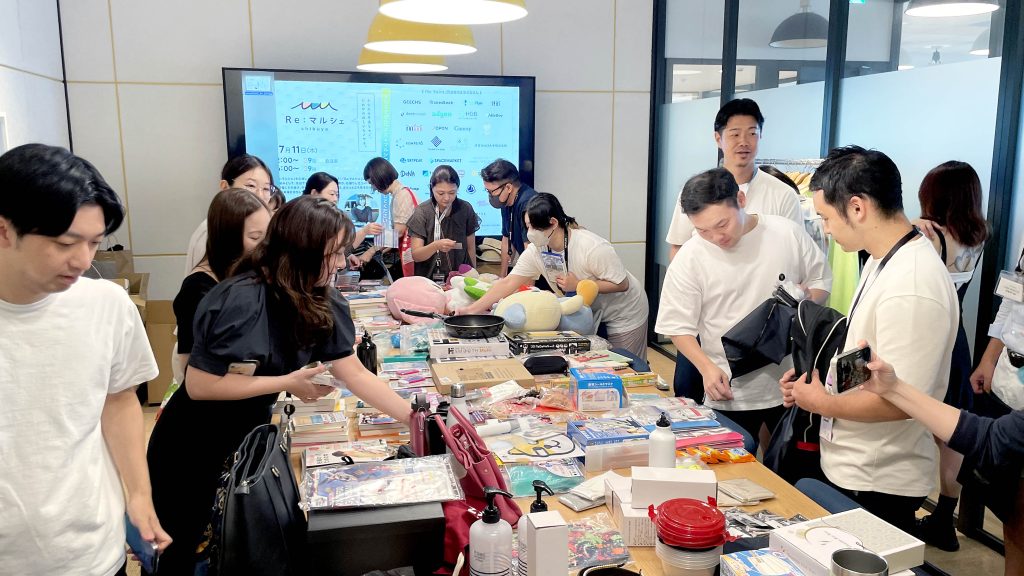 「Re:マルシェ」は今回で4回目。「その不要なモノ、誰かのほしいモノかも」をコンセプトに、ギークスの本社が入るWeWork渋谷スクランブルスクエアの入居企業の皆さまからそれぞれ不要になったモノを持ち寄っていただき、お譲りし合うイベントです。