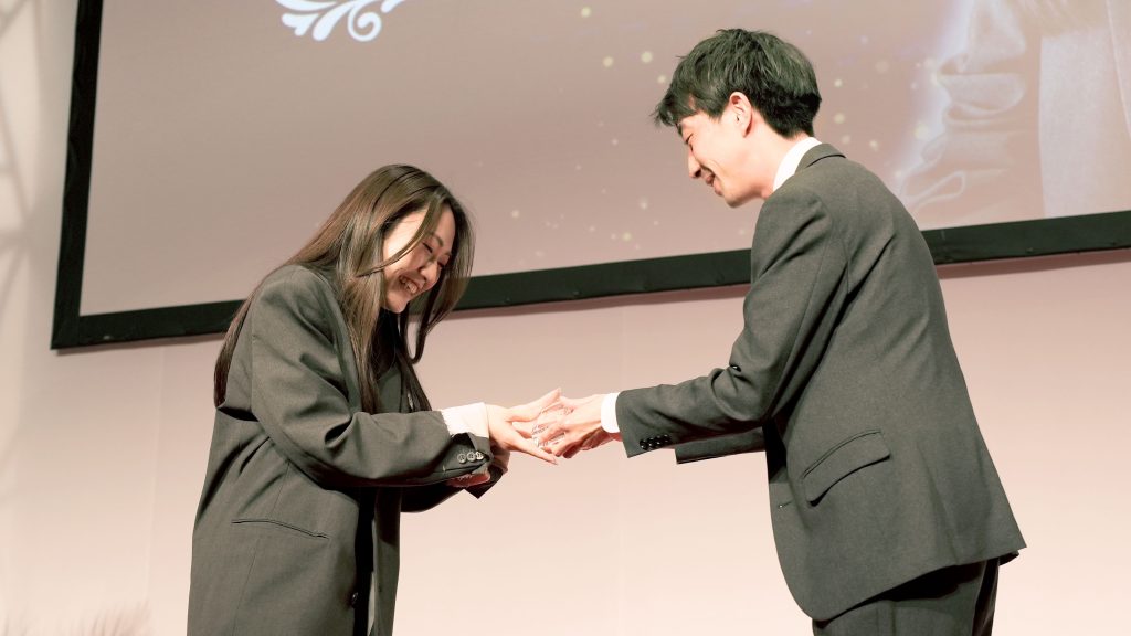 大崎さんは上期にリーダーとして私を見てくださっていました。前回Buddy賞を受賞できなかった際に、「受賞させてあげられなくてごめん」と謝りながら泣いてくださって、その姿に私も号泣してしまったんです。自分のことのように悔しがってくれる姿に嬉しさと申し訳なさを抱いたと同時に、「こんなに応援してくれる先輩がいるなら、ちゃんと頑張らないと」とより一層気が引き締まり、仕事に取り組んだ半期でした。こうして壇上でお祝いコメントをいただけたのは感慨深かったですし、言葉の一つひとつがより沁みました。