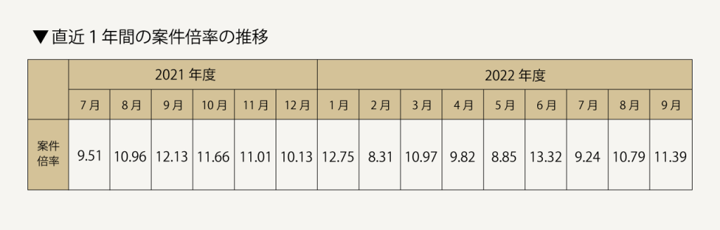 2022年7~9月における「案件倍率」のトレンド