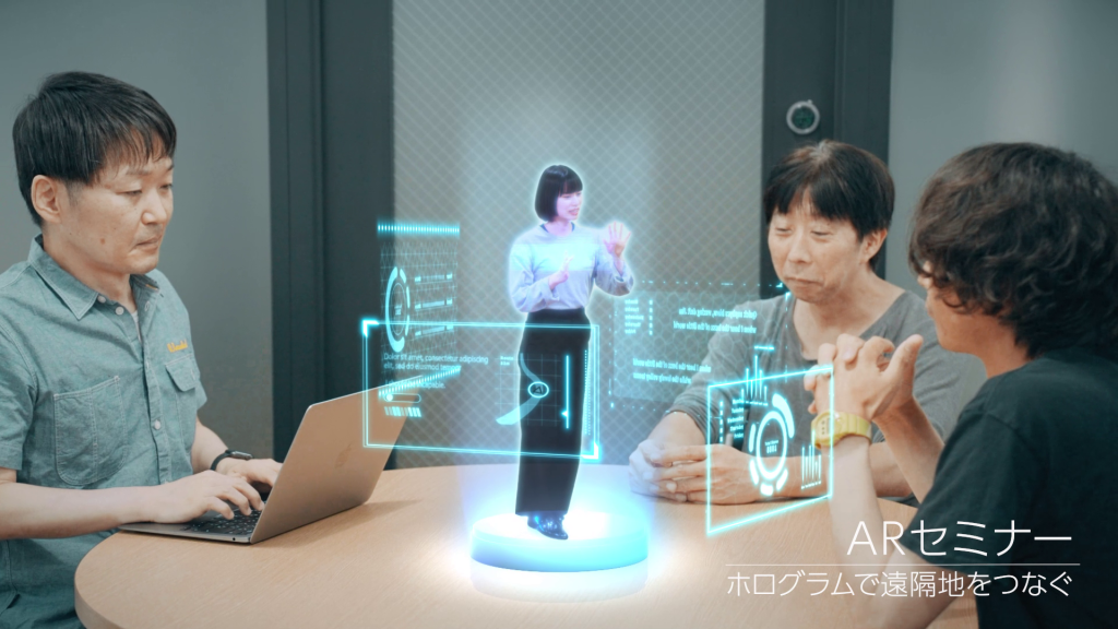 ARやMRなどでリアルタイムに登壇者(スピーカー)を3D表示させ、遠隔地の方にも実際の顔の表情や身振り手振りまでも共有することを目指しています。