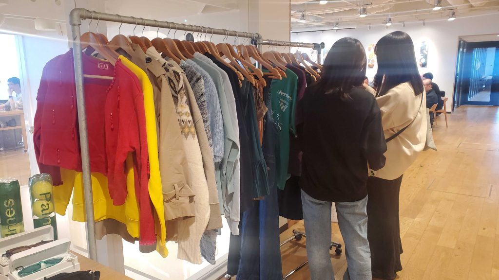 開催期間中、合計450アイテム以上の衣料品、靴、帽子、カバンなどが出品され、約300アイテムほどが引き取られました。WeWork渋谷スクランブルスクエアの受付前に特設ブースを設置したことも相まって、WeWork入居企業の皆さまだけでなく、開催期間中にWeWorkに足を運んだ方々の目にも留まり、多くの方々にブースを訪れていただきました。