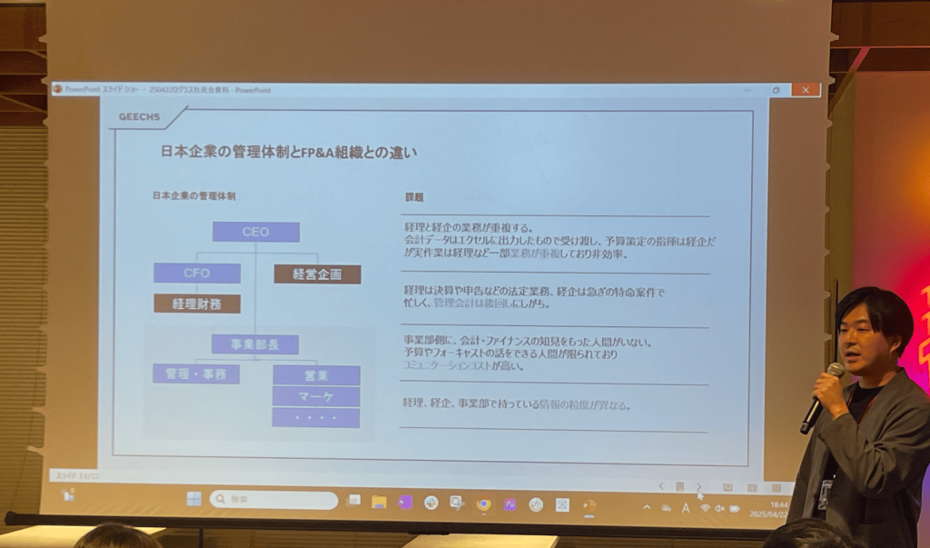 株式会社ログラスのイベント「ケイキの夜会」にて、経営管理本部長 兼 FP&A部 部長 鈴木が登壇しました。「現場と経営を繋ぐ、FP&A部の組織立ち上げの実践法」をテーマに、FP&A部門新設のステップやFP&A部門設置後の効果と今後の進め方などについて、セミナー形式でお話ししました。