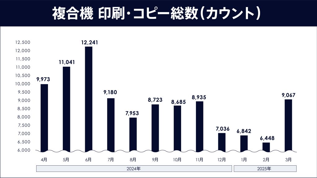 複合機 印刷・コピー総数は、ギークスグループの本社オフィス内にある複合機を用いて、印刷・コピーを実施した数を算定しているものです。